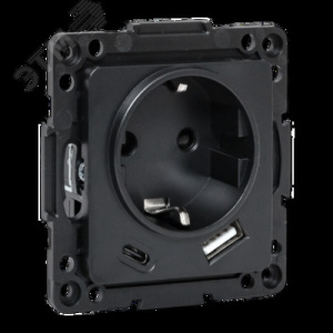 Стокгольм Механизм Розетки 1-местной с/з, USB A+C 16А винтовые клеммы черный с защ. штор. EKF