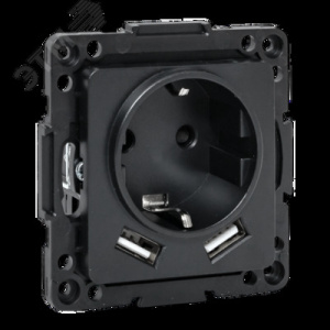 Стокгольм Механизм Розетки 1-местной с/з, USB 2A 16А винтовые клеммы черный с защ. штор. EKF