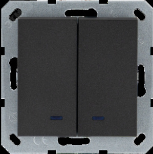 Выключатель двухклавишный со светодиодами 10A 250V~ с накладкой, цвет Антрацит