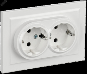 BRITE Розетка 2-местная с заземлением с защитными шторками 16А в сборе РСш12-3-БрБ белый