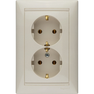 Розетка UNICA NEW двойная со шторками с заземлением винтовой зажим белый