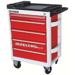 Тележка инструментальная серии PRO без инструментов, 5 выдвижных ящиков, цвет красно-черный