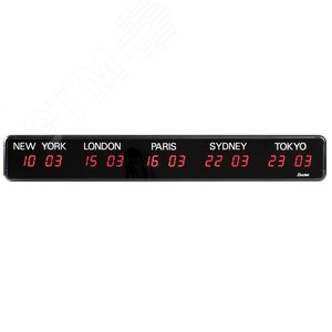 Табло мирового времени World Style (часы/минуты), высота цифр 5 см, красный цвет, 5 временных зон, г