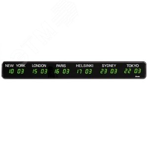 Табло мирового времени World Style (часы/минуты), высота цифр 5 см, зеленый цвет, 6 временных зон, г