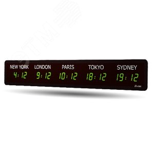 Табло мирового времени World Style (часы/минуты), высота цифр 5 см, белый цвет, 5 временных зон, гор