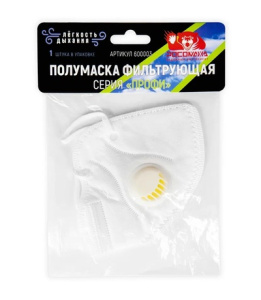 Полумаска фильтрующая, FFP1, полипропиленовая, 3-х слойная с клапаном