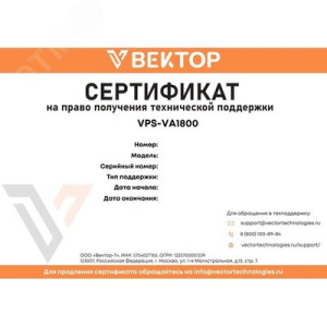 Сертификат на право получения стандартной технической поддержки на 1 год для к/а VA1800-48P-6X