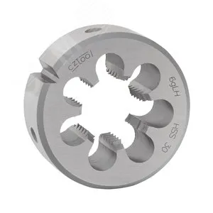 Цельная метрическая плашка предназначена для нарезания в 1 проход наружной резьбы в винтах, болтах, шпильках и др. из нелегированной и низколегированной стали с прочностью до 1000 Н/мм2 и цветных металлов. Изготовлена из высокопроизводительной быстрорежущей стали.