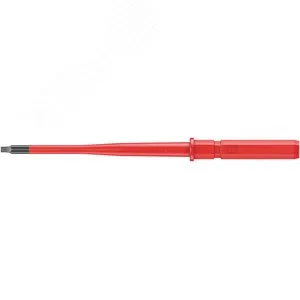 Сменная отвёртка с зауженным стержнем и защитной изоляцией, с помощью которой можно достать расположенные в глубине винты и пружинные зажимы. Инструменты проверены поштучно по стандарту IEC 60900. Поштучная проверка в водяной бане под напряжением 10000 В для безопасной работы на оборудовании с максимально допустимым напряжением 1000 В.