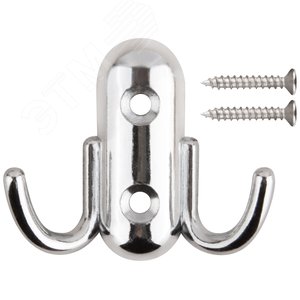 Крючок двойной. Для бытового применения. Необходимый крепеж в комплекте. Материал - инструментальная сталь. Упаковка - п/э пакет с картонным подвесом.