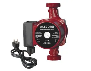 Циркуляционный насос Alecord обеспечивает циркуляцию воды в системах отопления, а также системах обогрева полов. Прибор уже укомплектован кабелем длиной 1 метр с евровилкой, имеет небольшие габаритные размеры и вес, работает практически бесшумно и потребляет мало электроэнергии. Циркуляционные насосы Alecord применяют в загородных домах площадью свыше 100 квадратных метров, так как естественная конвекция не сможет обеспечить равномерный прогрев всех отопительных приборов.