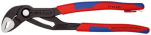 87 02 250 T BK KNIPEX Cobra регулировка прямо на детали простым нажатием кнопки. настройка непосредственно на детали при одновременно удобном расположений ручек. функция смыкания губок, которая облегчает работу в узких и труднодоступных местах. захватные губки со специально закаленными зубцами твердостью примерно 61 HRC - надежный захват - надолго!. коробчатый шарнир - высокая стабильность благодаря двум направляющим. надежная фиксация винта шарнира - случайная перестановка исключена. Защита от защемления пальцев. Инструмент с креплением для страховки от падения с высоты. карта самообслуживания/ блистер. - Позиции установки - 25 - Диапазон для гаек, размер под ключ - 2 in - Диапазон для гаек, размер под ключ - 46mm - Параметры для труб (диаметр) - 50mm - Страховка от падения инструмента с высоты - да