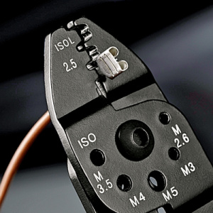 97 22 240 Пресс-клещи . с режущими выборками для резания медных или латунных резьбовых шпилек M 2,6, M 3, M 3,5, M 4 и M 5. винтовой шарнир для высокой стабильности и равномерности хода. - Применение - кабельные наконечники с изолятором + кабельные соединители - Параметры кв.мм - 0,5-6,0mm? - Количество гнезд - 3 - AWG - 20-10
