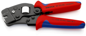Самонастраивающиеся пресс-клещи для опрессовки контактных гильз для опрессовки контактных гильз (по стандарту DIN 46 228 часть 1 + 4). саморегулирующаяся настройка на нужный размер контактной гильзы - исключаются ошибки опрессовки из-за неверного выбора опрессовочной плашки. Вставка втулок в клещи спереди. неизменно высокое качество опрессовки за счет принудительной блокировки (с отпиранием). усилие опрессовки точно откалибровано изготовителем. высокая передача усилия благодаря рычажному механизму, для снижения усталости при работе. инструмент удобен в использовании благодаря продуманной конструкции и малому весу. oпрессовка в диапазоне поперечных сечений 0,08 -10,0 мм.кв в одной матрице. гильзы контактные до 2,5 мм.кв могут параллельно вставляться сбоку. подходит для всех двойных концевых гильз сечением до 2 x 4 мм.кв или 2 x AWG 12