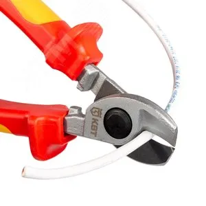 Для работы под напряжением до 1000 В, Режущие кромки закалены токами высокой частоты. HRC 58-62. Диапазон резки - многопроволочные провода до 15 мм многопроволочные провода до 15 мм. Материал рабочей части - хром-ванадиевая сталь. Обработка поверхности - никелирование. Двухкомпонентные рукоятки с мягкими вставками и упорами для защиты от соскальзывания