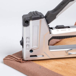 Профессиональный инструмент для скрепления различных материалов между собой при помощи скоб и гвоздей. Виды крепежа - тип 53 (П-образная), 6–14 ммтип 140 (П-образная), 6–14 ммтип 36 (L) (U-образная), 10–14 ммтип 300 (T-образная), 10–14 мм тип 53 (П-образная), 6–14 мм тип 140 (П-образная), 6–14 мм тип 36 (L) (U-образная), 10–14 мм тип 300 (T-образная), 10–14 мм Рессорный ударный механизм с регулировкой силы удара. Специальный регулятор для выбора силы удара, Регулировка силы удара позволяет выбрать нужный режим, в зависимости от плотности материала. Переключатель выбора типа крепежа. Корпус из легкого и прочного алюминиевого сплава. Покрытие - порошковая покраска. Прочная металлическая направляющая магазина. Удобство и эффективность эксплуатации. Встроенная металлическая клипса для крепления степлера на пояс. Двухкомпонентная эргономичная рукоятка. Фиксатор рукоятки. Смотровое окно для контроля остатка скоб. Габариты 190х120х38 мм. Вес 630 г