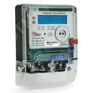Счётчик электроэнергии однофазный НЕВА МТ 114 AS WF1P 5(60)A 92 регион