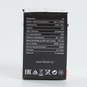 Лампа светодиодная, (1W) 230V E27 оранжевый G45, LB-37