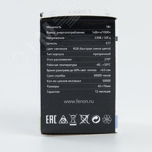 Лампа светодиодная LED 1вт Е27 RGB прозрачный быстрая смена цвета шар