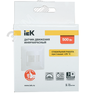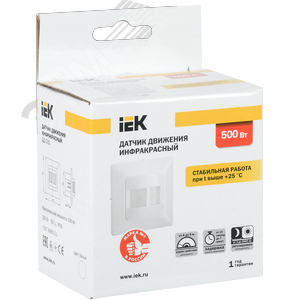 Датчик движения ИК встраиваемый 500w 190 градусов 9м IP20 белый