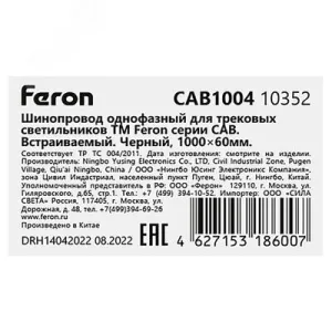 Однофазный встраиваемый шинопровод CAB1004 ТМ Feron предназначен для использования с трековыми светильниками. Шинопровод встраивается в нишу стены или потолка из нормально воспламеняемого материала. Также, в случае большого запотолочного пространства, шинопровод подходит для монтажа на подвес CAB1002. Может быть соединен в различные варианты конструкций (линия, угол) посредством соединителей LD1004, LD1005.