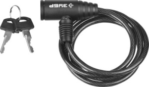 Тросовые замки ЗУБР изготовлены из прочных высококачественных материалов и оснащены надежными запорными механизмами, благодаря чему гарантируют высочайшую степень защиты Вашего имущества. Тросовые замки – надежное противоугонное средство. С его помощью велосипед, скутер или мопед быстро и легко пристегиваются к любой опоре. А во время движения замок фиксируется на раме или стойке сиденья. Замок состоит из металлического троса в полимерной оболочке и запорного механизма.