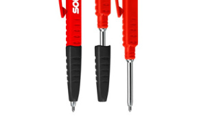 Карандаш 2 в 1 TLM2 SOLA 66041120 оснащен тонким графитовым грифелем твердостью HB и предназначен для маркировки, письма и рисования на самых разных материалах и поверхностях (дерево, бумага или картон). Для разметки в труднодоступных углубленных местах карандаш оснащен отвинчивающейся пластиковой насадкой. При снятии пластикового колпачка открывается длинный тонкий наконечник из нержавеющей стали, позволяющий осуществлять разметку в труднодоступных местах глубиной до 45 мм. Эргономичная треугольная форма карандаша TLM2 с текстурированной поверхностью обеспечивает удобный хват и надежное удержание инструмента при монтажных работах. Имеет встроенную в кнопку точилку для стержня.