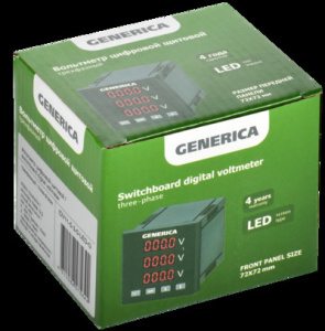Вольтметр цифровой щитовой трехфазный 72х72мм LED GENERICA