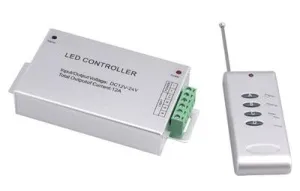 Контроллеры для RGB-ленты с пультом управления предназначены для управления светодиодной лентой. Можно менять цвета свечения ленты, задавая любые. Можно программировать контроллер, задавая частоту смены цветов свечения ленты, можно достичь плавной смены цветов или сделать ее резкой, добавить мерцание или использовать другие интересные функции. Тип управляещего сигнала отличается у разных моделей контроллеров - инфракрасный, радиочастотный, высокочастотный.