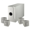 Сателлитная акустическая система с 1 сабвуфером и 4 громкоговорителями-сателлитами, цвет белый, передняя панель из АБС, деревянный корпус (сабвуфер) или HIPS (спутники).