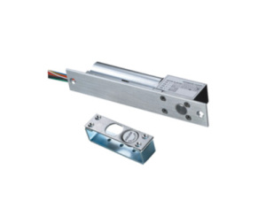 Нормально-открытый соленоидный ригельный замок с мониторингом положения двери. DC 12В, 90 мА (режим ожидания), 800 мА (рабочий режим), планка - алюминий, ригель - сталь, размеры 200?34?42 мм (ДШВ), регулируемый таймер закрытия (обновленная версия ALDB-100+).