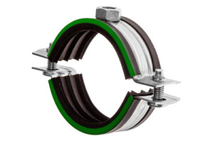 Хомут сантехнический Mayer д/труб 4'(108-116мм) гайка М10 и уплотн. с зел.полосой