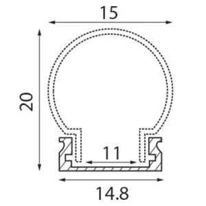Профиль алюминиевый круглый узкий, серебро, CAB282 с матовым экраном, 2 заглушками, 4 крепежами в комплекте