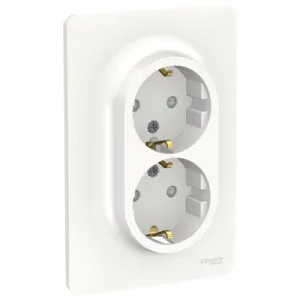 Розетка UNICA NEW двойная со шторками с заземлением винтовой зажим белый