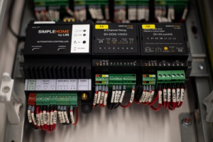 Готовые решения Simple Home SH-4V- это быстрый и удобный вариант встроенного исполнения для создания системы ''умный дом'' в четырехкомнатной квартире. Комплект представляет собой шкаф с уже установленным и настроенным оборудованием. Включенный функционал: управление освещением (до 19 групп, вкл./выкл.), управление моторизированными шторами или жалюзями (до 6 устройств), мониторинг протечек (4 датчика) и управление приводами на ГВС/ХВС (2 устройства), управление отоплением с терморегуляторами (5 зон), управление вытяжными вентиляторами (3 устройства), управление теплым полом с теромрегулятором (2 устройства).
