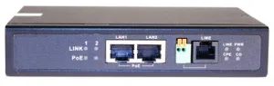 Удлинитель Ethernet на 2 порта до 3000м с функцией PoE. Автоопределение PoE устройств. Стандарт IEEE 802.3af/at (До 30W на порт). Скорость передачи 90Мбит/с (300м), 56Мбит/с(600м), 30Мбит/с(900м), 16Мбит/с(1500м), 14Мбит/с(2000м), 8Мбит/с(2400м), 5Мбит/с(3000м) . 2 режима -клиент(CPE)/сервер(CO) . Вх.-роз. 2.1х5мм(DC12V, 0.5A). Вх./вых.- RJ11(VDSL2)/клеммы(VDSL2)/RJ45(Ethernet)x2. БП DC12V(1A) в комплекте. Размеры 137х100х27 мм. Рабочая температура 0...+50 гр.С.