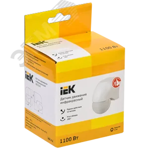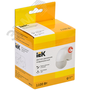 Детектор движения ДД 010 1100Вт угол. обз. 180град. IP44 бел. IEK LDD10-010-1100-001