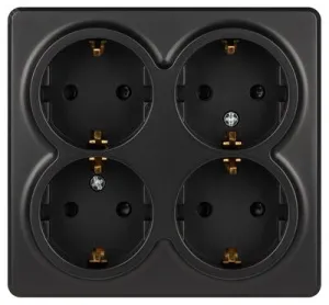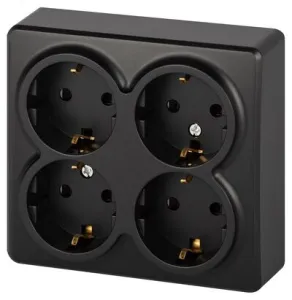Розетка Эксперт 11-2211-05 четырехместная с заземлением 4х2P+E Schuko со шторками, IP20, 16A-250В, ОУ, антрацит