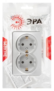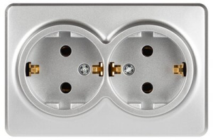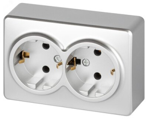 Розетка Эксперт 11-2205-03 двойная с заземлением 2х2P+E Schuko IP20 16A-250В ОУ алюминий