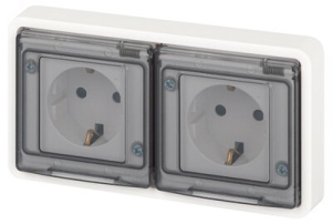 Розетка Эксперт 11-2524-01 2х2P+E гориз. IP55, шторки, 16A-250В, СУ, белый
