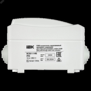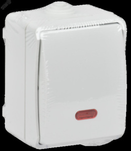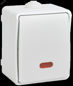FORS Выключатель 1-клавишный проходной с индикацией для открытой установки 10А IP54 ВС20-1-1-ФБ белы