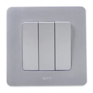 Выключатель трёхклавишный Legrand Inspiria для скрытого монтажа , цвет ''Алюминий'', номинальный ток 10АХ, напряжение ~250В. Предназначен для независимой коммутации трёх нагрузок с одного места. Подходит для управления многорожковыми люстрами и осветительными приборами с большим количеством ламп. Устанавливается в жилых и общественных помещениях для управления приборами освещения, вентиляции и т.д.