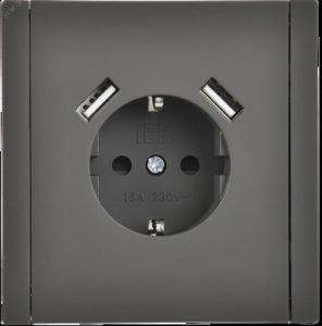 FORTE&PIANO Розетка 1-местная с заземлением с защитными шторками винтовое крепление 16А USB A+A 3,1А FP345 серый IEK