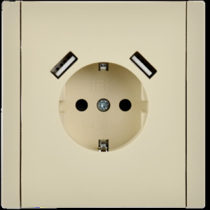 FORTE&PIANO Розетка 1-местная с заземлением с защитными шторками винтовое крепление 16А USB A+A 3,1А FP445 ваниль IEK