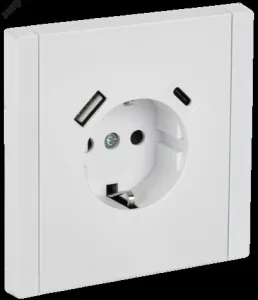 FORTE&PIANO Розетка 1-местная с заземлением с защитными шторками винтовое крепление 16А USB A+C 18Вт FP247 белый IEK