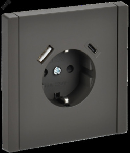FORTE&PIANO Розетка 1-местная с заземлением с защитными шторками винтовое крепление 16А USB A+C 18Вт