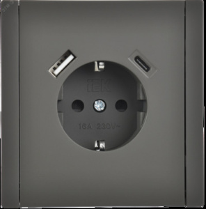 FORTE&PIANO Розетка 1-местная с заземлением с защитными шторками винтовое крепление 16А USB A+C 18Вт FP347 серый IEK