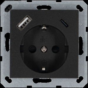 Розетка Schuko с USB A+C с защитными шторками 16A 250V~ 2P+T USB 25W, цвет Антрацит