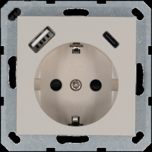 Розетка Schuko с USB A+C с защитными шторками 16A 250V~ 2P+T USB 25W, цвет Тауп