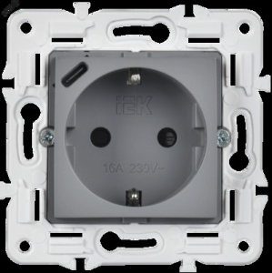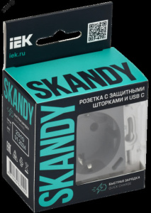 SKANDY Розетка с заземлением с защитными шторками 16А с USB C 18Вт SK-R17Gr серый IEK